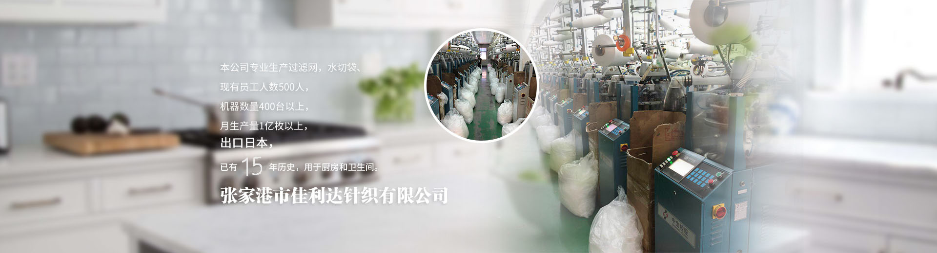 張家港市佳利達針織有限公司地處田垛里二區,北依南通港,東傍上海港,與蘇錫常地區接壤,地理位置優(yōu)越,水陸交通便利。現有員工人數500人,機器數量400臺以上,月生產量1億枚以上。公司專業生產水切網、滌綸網袋、垃圾過濾袋、無紡布網袋、水槽過濾袋、水槽水切袋、不銹鋼水槽網、廚余過濾、廚房衛(wèi)生清潔用品等,出口日本已有15年歷史,用于廚房和衛(wèi)生間,產品暢銷上海、廣州、深圳、南京、蘇州、無錫、常州等全國各地。